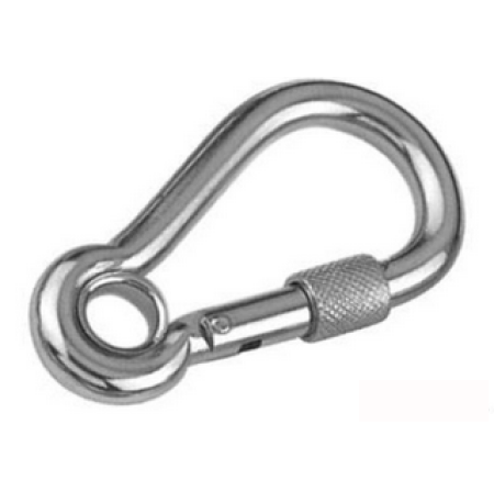 Карабин пружинный с резьбовой предохранительной втулкой и кольцом 10х100 АРТ 8232 нержавеющая сталь А4